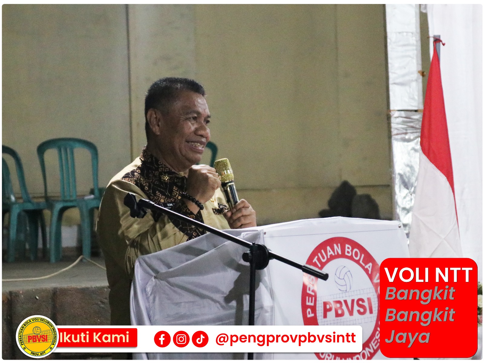 Sambutan Ketua Umum PBVSI NTT diakhiri dengan pantun penuh semangat, Voli Ende bak bunga mawar, Harumnya dulu semerbak kini pudar. Bersama kita susun program jaya,Kembalikan kejayaan akan NTT selamanya!