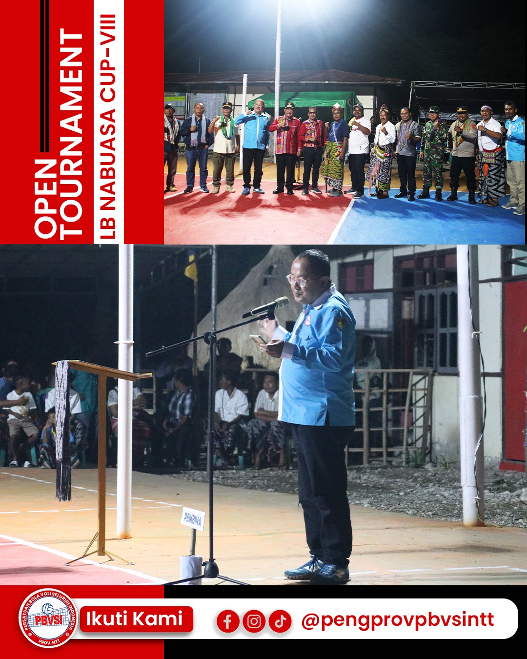 Ketua Umum PBVSI NTT, Winston Rondo bersama Bupati TTS Eduard Markus Lioe, membuka secara resmi turnamen bola voli LB Nabuasa Cup VIII, Jumat (20/6), di Amanuban Selatan. Turnamen ini jadi ajang unjuk gigi 24 tim putra dan putri dari wilayah yang dikenal sebagai “lumbung atlet voli NTT” — Timor Tengah Selatan.